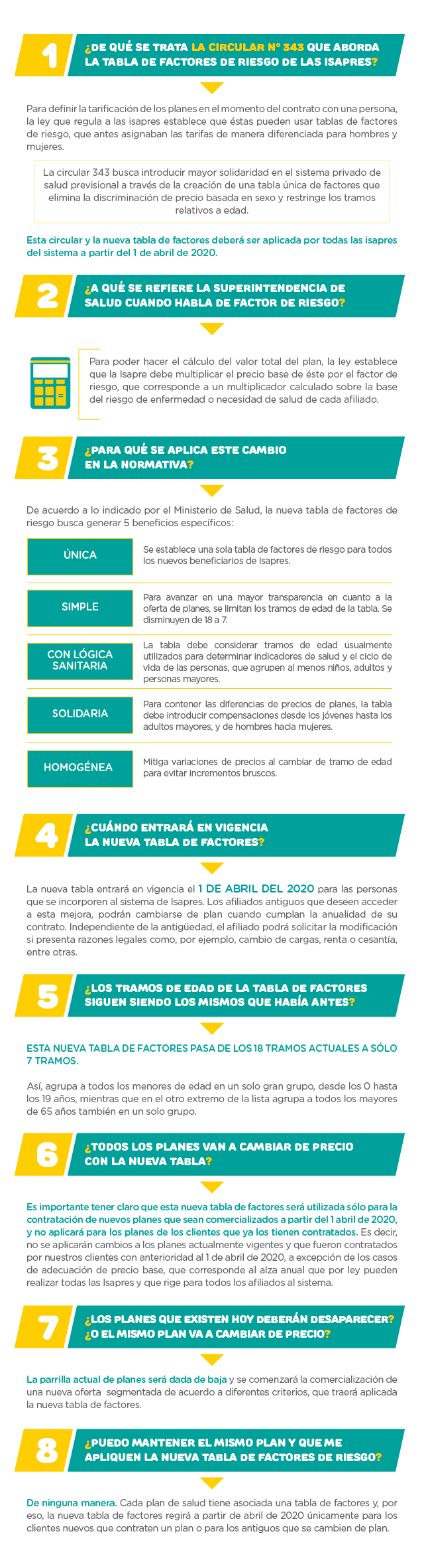 A partir del 1 de Abril de 2020, de acuerdo a lo instruido en la Circular N° 343 de la Superintendencia de Salud, se pone fin a las diferencias de precio entre hombres y mujeres a la hora de contratar un plan de salud en Isapres, a través de la aplicación/implementación de una única tabla de factores.